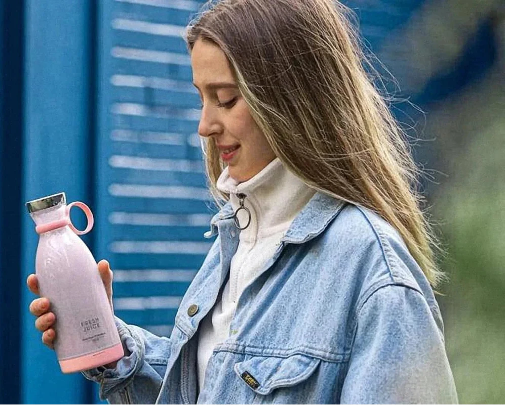 The Juicy Sip™ is a sleek, pink 380ml blender perfect for on-the-go smoothies. With a handy handle and powerful blending, it effortlessly mixes fruits like raspberries and blackberries into a smooth juice. Ideal for home, work, or travel, it supports a healthy lifestyle with ease.